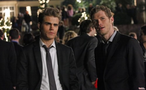 Klaus and his hybrid bestie, Tyler, share a few laughs, but the discussion takes a turn. Klaus points out every single one of Tyler’s friends having their fun at the party. Klaus warns his creation that if any one of them should try to do something stupid, he has more than enough friends to take revenge. Okay? See those creepy statue-like people out there? Yeah. They’re hybrids ready to kill at a moments notice. Gulp. I think Klaus has a plan of his own. Not good.