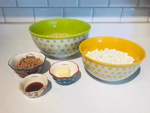 - In a large saucepan, melt the butter on a medium-low heat. Add the marshmallows. STIR FREQUENTLY.